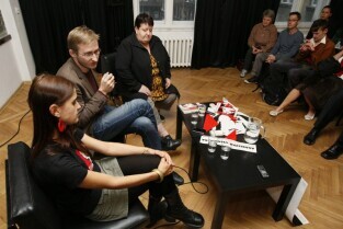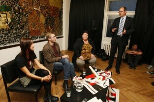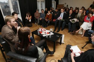 Promocja książki "Duża solidarność, mała solidarność. Biografia Henryki Krzywonos". Gdańsku, siedziba Krytyki Politycznej. Nz. Sławomir Sierakowski redaktor naczelny "Krytyki Politycznej"