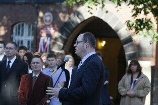 Otwarcie nowego boiska wielofunkcyjnego. Gdańsk, VIII LO przy ul. Kartuskiej. Nz. Prezydent Gdańska Paweł Adamowicz