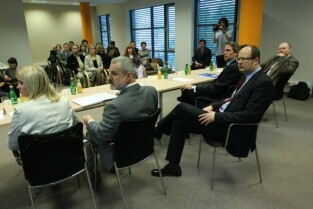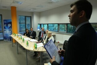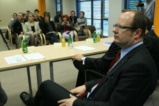 Konferencja prasowa poświęcona sytuacji na rynku pracy i działalności GE Money Bank w Gdańsku. Nz. prof. dr hab. inż. Waldemar Kamrat - Prorektor ds. kształcenia i rozwoju Politechniki Gdańskiej