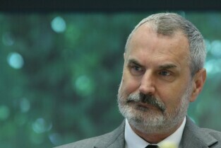 Konferencja prasowa poświęcona sytuacji na rynku pracy i działalności GE Money Bank w Gdańsku. Nz. dr hab. Jacek Zaucha - Wydział Ekonomiczny Uniwersytetu Gdańskiego