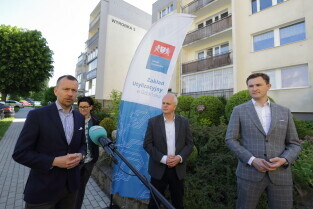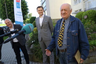 Gdańsk. Briefing podsumowujący akcję „Czarne złoto ogrodników” organizowaną przez Zakład Utylizacyjny i Gdańskie Usługi Komunalne. Nz. Piotr Grzelak - zastępca prezydenta ds. zrównoważonego rozwoju, Michał Dzioba – prezes Zakładu Utylizacyjnego i Mariusz Bykowski – prezes zarządu LWSM Morena.