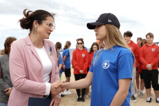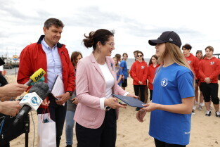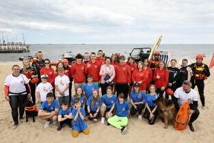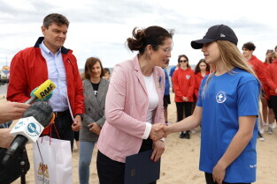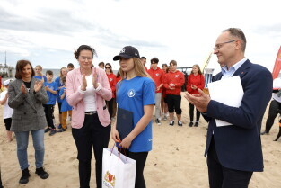 W konferencji udział wzięli: Aleksandra Dulkiewicz, prezydent Gdańska, Adam Korol, dyrektor Biura Prezydenta ds. Sportu, Leszek Paszkowski, dyrektor Gdańskiego Ośrodka Sportu oraz Dorota Kuś, autorka projektu BO Kosze plażowe -kąpielisko w Brzeźnie jak dawniej!