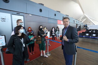 Gdańsk, Port Lotniczy Gdańsk im. Lecha Wałęsy. Briefing prasowy podczas którego zaprezentowano, w jaki sposób lotnisko jest przygotowane na przyjęcie pasażerów w wymaganym rygorze sanitarnym.