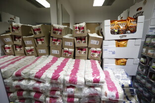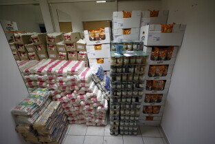 Briefing prasowy w punkcie zbiórki pomocy materialnej dla ofiar trzęsienia ziemi