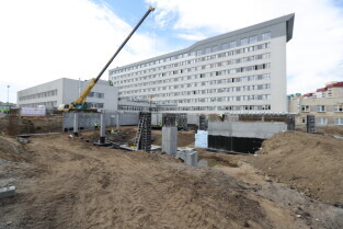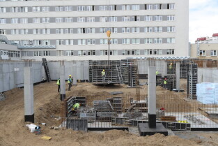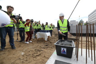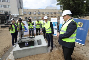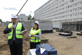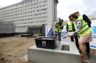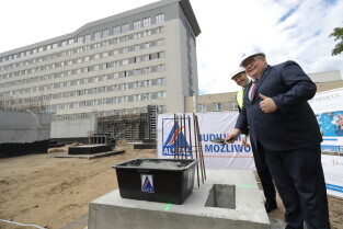 Gdańsk, Szpital św. Wojciecha. Uroczystość wmurowania kamienia węgielnego pod budowę bloku operacyjnego.