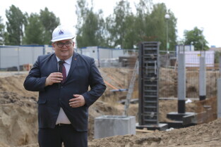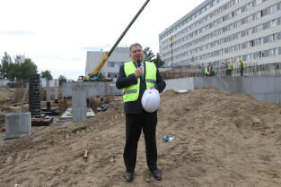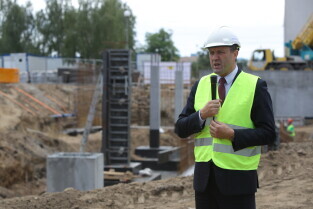 Gdańsk, Szpital św. Wojciecha. Uroczystość wmurowania kamienia węgielnego pod budowę bloku operacyjnego. Nz. Wiceprezydent Gdańska Piotr Kowalczuk.