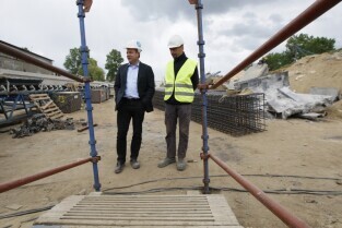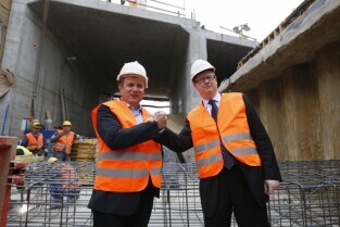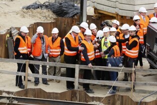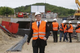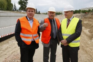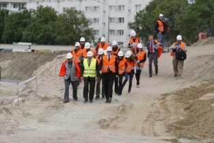 Budowa Drogi Zielonej przebiegającej na granicy Gdańska i Sopotu, od Ergo Areny do skrzyżowania al. Grunwaldzkiej, Niepodległości i ul. Czyżewskiego. Nz. po lewej Prezydent Sopotu Jacek Karnowski