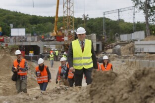 Budowa Drogi Zielonej przebiegającej na granicy Gdańska i Sopotu, od Ergo Areny do skrzyżowania al. Grunwaldzkiej, Niepodległości i ul. Czyżewskiego. Nz. Prezydent Gdańska Paweł Adamowicz