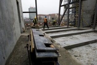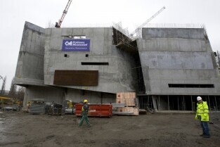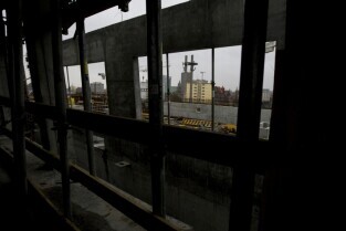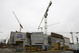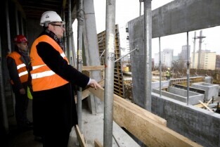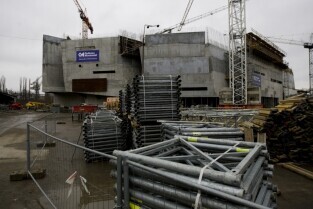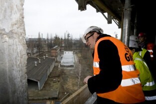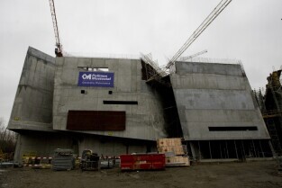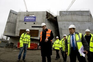 Budowa Europejskiego Centrum Solidarności w Gdańsku na terenach postoczniowych w sąsiedztwie placu Solidarności. Budowę odwiedził Prezydent Gdańska Paweł Adamowicz