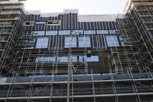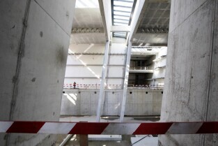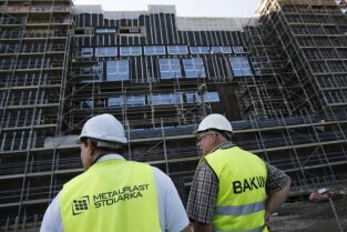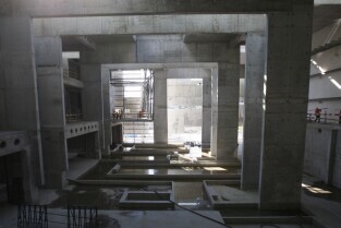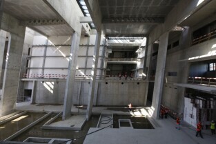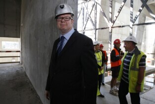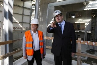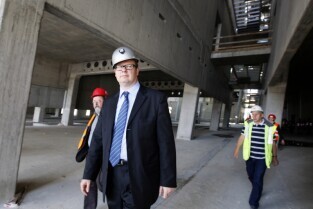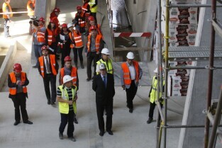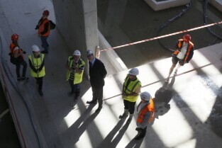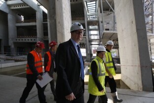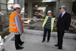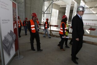Prezydent Gdańska Paweł Adamowicz, Dyrektor ECS Basil Kerski i Wiceprezes GIK Romuald Nietupski w towarzystwie dziennikarzy zwiedzili budowę gmachu Europejskiego Centrum Solidarności w Gdańsku.