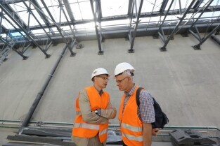Gdańsk. Postępy Prac na budowie Muzeum II Wojny Światowej. Nz Paweł Machcewicz-Dyrektor Muzeum II Wojny Światowej i Mec. Jacek Taylor.