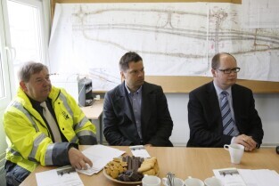 Budowa ostatniego odcinka Trasy W-Z, która połączy centrum Gdańska z Obwodnicą Trójmiasta. Dwujezdniowa droga wraz z Węzłem Karczemki powstanie do końca 2011 roku. Nz. krótki briefing prasowy, od prawej: Prezydent Gdańska Paweł Adamowicz, Dyrektor Oddziału Skanska w Gdańsku Krzysztof Pietras, Prezes spółki GIK Ryszard Trykosko