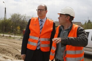 Budowa ostatniego odcinka Trasy W-Z, która połączy centrum Gdańska z Obwodnicą Trójmiasta. Dwujezdniowa droga wraz z Węzłem Karczemki powstanie do końca 2011 roku. Nz. Prezydent Gdańska Paweł Adamowicz i kierownik budowy Grzegorz Dąbrowski (po prawej)