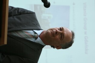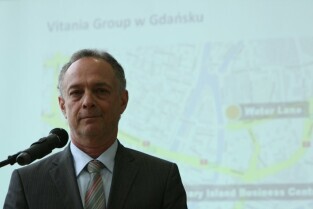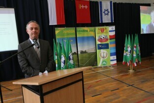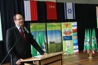 Gimnazjum nr 2 w Gdańsku. Wmurowanie kamienia węgielnego pod budowę boiska w ramach Programu "Junior Gdańsk 2012". Nz. Prezes Vitania Group Poland Roni Livni