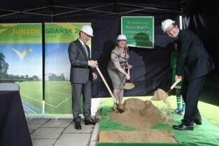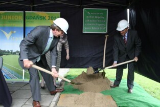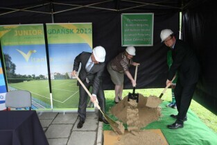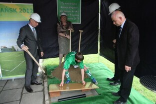 Gimnazjum nr 2 w Gdańsku. Wmurowanie kamienia węgielnego pod budowę boiska w ramach Programu "Junior Gdańsk 2012"