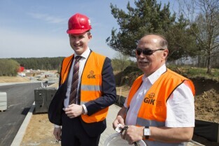 Gdańsk Jasień. Budowa dróg dojazdowych do powstającego przystanku Pomorskiej Kolei Metropolitalnej "Jasień". Nz. Z-ca Prezydenta Gdańska Piotr Grzelak i Wiceprezes Gdańskich Inwestycji Komunalnych Romuald Nietupski
