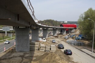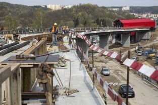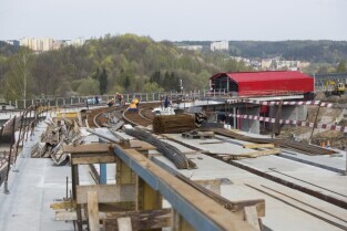 Gdańsk Brętowo. Budowa estakady tramwajowej na linii Siedlce - Piecki-Migowo, która zakończy się przy przystanku Pomorskiej Kolei Metropolitalnej "Brętowo". Nz. Z-ca Prezydenta Gdańska Piotr Grzelak