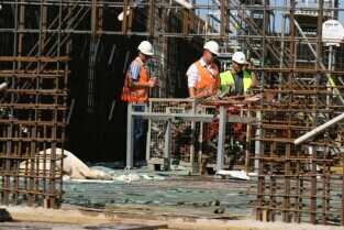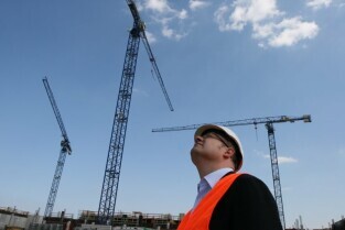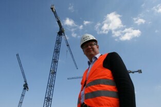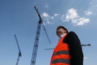 Gdańsk Letnica. Budowa stadionu na EURO 2012. Na zdjęciu Prezydent Gdańska Paweł Adamowicz odwiedzający budowę