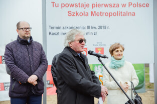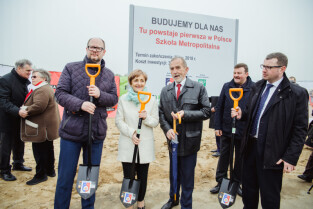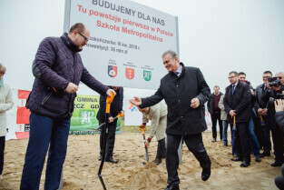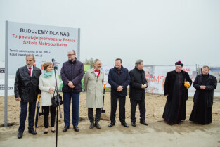 Budowa szkoły metropolitalnej w Kowalach - pierwsza łopata.
