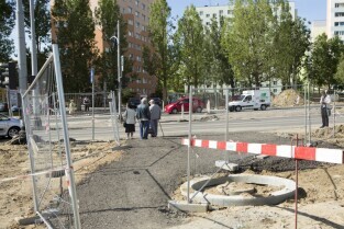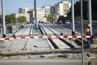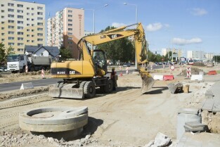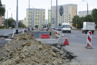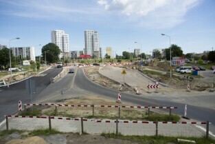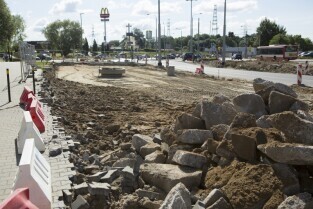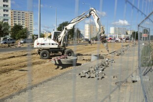 Budowa nowej linii tramwajowej w dzielnicy Piecki Migowo (popularnie zwanej "Morena") połączona z przebudową ul. Rakoczego i Nowolipie. Nz. "odnoga" tramwaju w stronę ul. Myśliwskiej, która niedługo powstanie jako osobna inwestycja