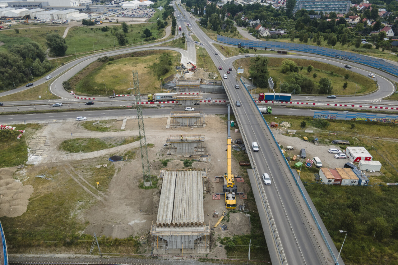 Gdańsk. Budowa wiaduktu przy ul. Elbląskiej.
