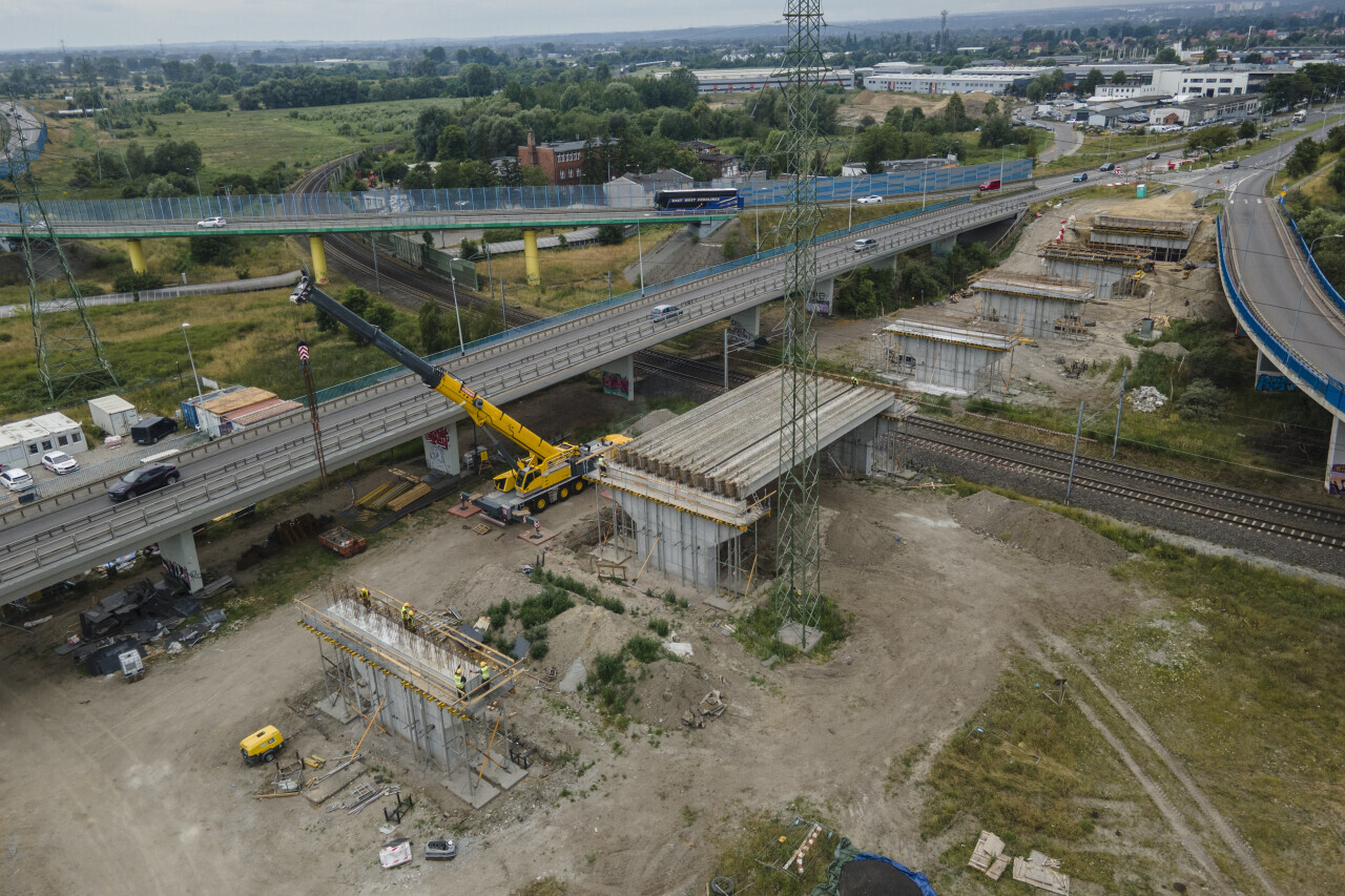 Gdańsk. Budowa wiaduktu przy ul. Elbląskiej.