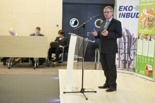 Konferencja "Nowe możliwości rozwoju regionu Pomorza, Budownictwo SMART 3E, efektywność - ekologia - energetyka". Gdańsk, Amber Expo. Nz. Nz. Prezes Gdańskiego Klastra Budowlanego Józef Kisielewski