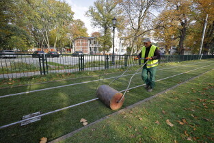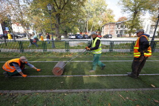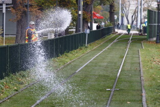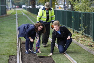 Gdańsk. Budżet Obywatelski 2022 – projekt „Zielone torowisko tramwajowe". Autorem projektów zielonych torowisk jest Cezary Kamiński.