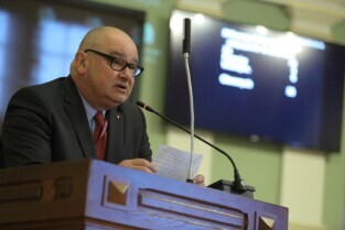 Sesja Rady Miasta Gdańska. Podczas sesji między innymi uchwalono budżet na rok 2016 i zaprzysiężono nowego Radnego Mariusza Andrzejczaka z PO. Nz Radny Grzegorz Strzelczyk.