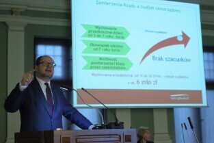 Sesja Rady Miasta Gdańska. Podczas sesji między innymi uchwalono budżet na rok 2016 i zaprzysiężono nowego Radnego Mariusza Andrzejczaka z PO. Nz Prezydent Gdańska Paweł Adamowicz