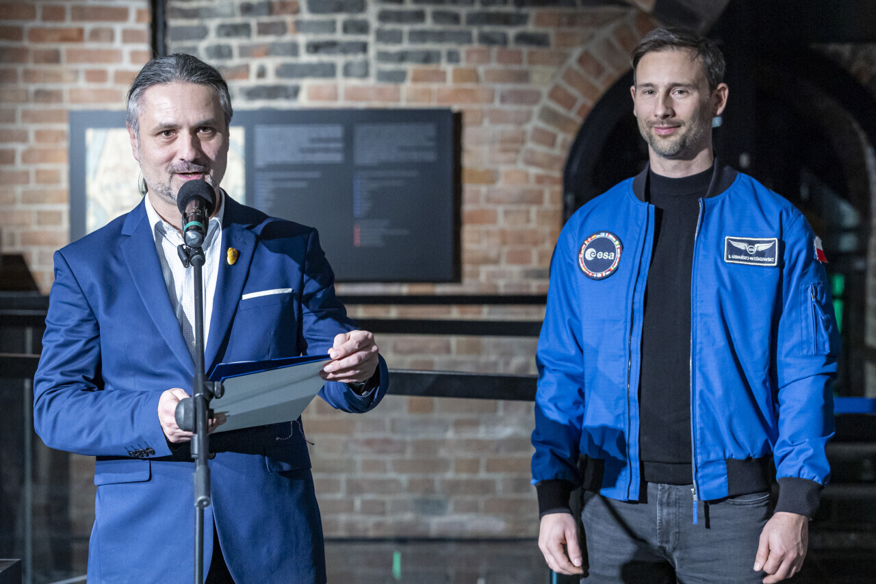 Gdańsk. Polski astronauta dr. Sławosz Uznański-Wiśniewski przekazał do Muzeum Bursztynu fragment bursztynu, który podróżował z nim na orbicie okołoziemskiej. W uroczystości oprócz polskiego astronauty, udział wzięli przewodnicząca Rady Miasta Agnieszka Owczarczak, Tomasz Wierzchowski - Zastępca Dyrektora ds. Technicznych Muzeum Gdańska, kierownik Muzeum Bursztynu, Renata Adamowicz oraz Robert Pytlos.