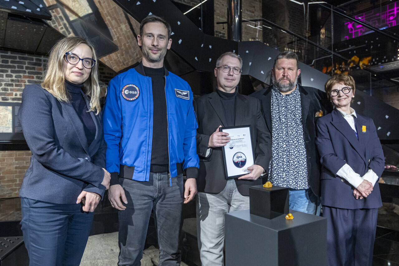 Gdańsk. Polski astronauta dr. Sławosz Uznański-Wiśniewski przekazał do Muzeum Bursztynu fragment bursztynu, który podróżował z nim na orbicie okołoziemskiej. W uroczystości oprócz polskiego astronauty, udział wzięli przewodnicząca Rady Miasta Agnieszka Owczarczak, Tomasz Wierzchowski - Zastępca Dyrektora ds. Technicznych Muzeum Gdańska, kierownik Muzeum Bursztynu, Renata Adamowicz oraz Robert Pytlos.