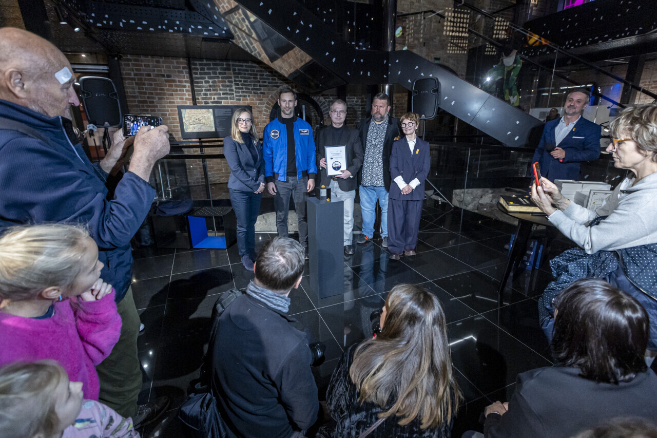 Gdańsk. Polski astronauta dr. Sławosz Uznański-Wiśniewski przekazał do Muzeum Bursztynu fragment bursztynu, który podróżował z nim na orbicie okołoziemskiej. W uroczystości oprócz polskiego astronauty, udział wzięli przewodnicząca Rady Miasta Agnieszka Owczarczak, Tomasz Wierzchowski - Zastępca Dyrektora ds. Technicznych Muzeum Gdańska, kierownik Muzeum Bursztynu, Renata Adamowicz oraz Robert Pytlos.