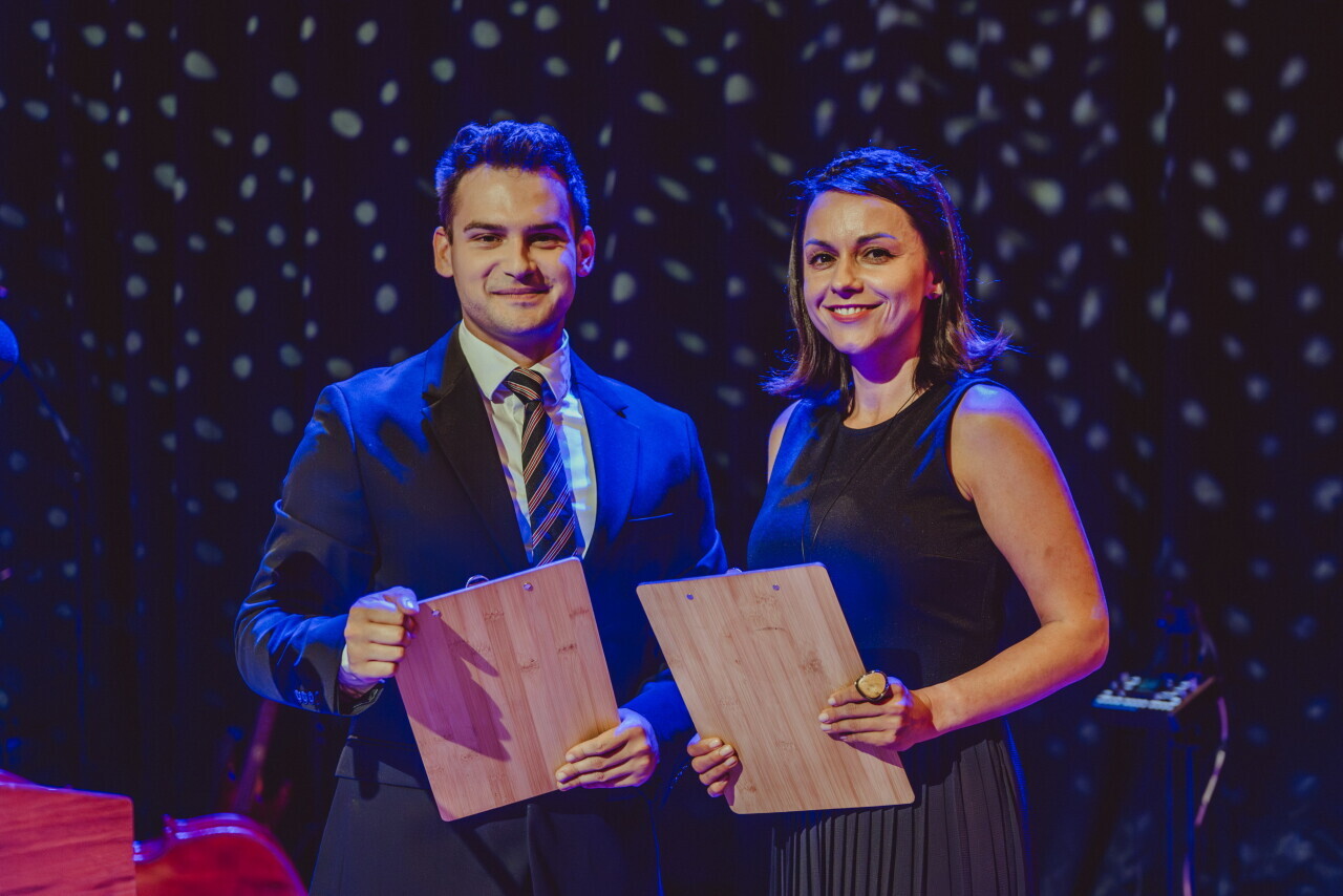 Gdańsk. W sali koncertowej Polskiej Filharmonii Bałtyckiej niemal 100 par odebrało z rąk prezydent Aleksandry Dulkiewicz gratulacje oraz wyjątkowe statuetki z bursztynem bałtyckim
