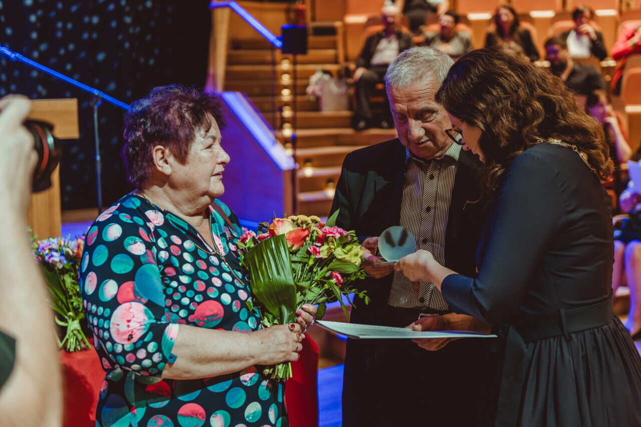 Gdańsk. W sali koncertowej Polskiej Filharmonii Bałtyckiej niemal 100 par odebrało z rąk prezydent Aleksandry Dulkiewicz gratulacje oraz wyjątkowe statuetki z bursztynem bałtyckim
