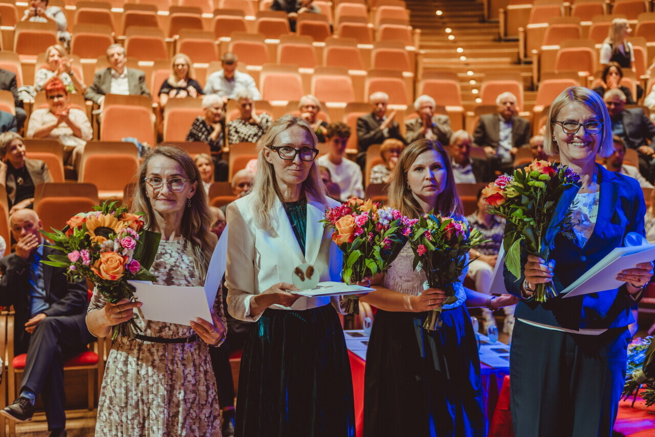 Gdańsk. W sali koncertowej Polskiej Filharmonii Bałtyckiej niemal 100 par odebrało z rąk prezydent Aleksandry Dulkiewicz gratulacje oraz wyjątkowe statuetki z bursztynem bałtyckim