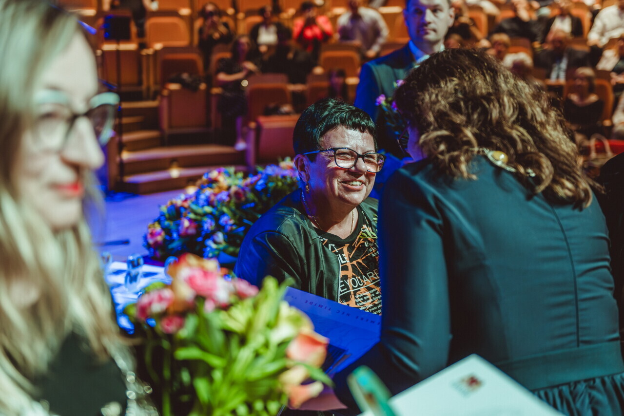 Gdańsk. W sali koncertowej Polskiej Filharmonii Bałtyckiej niemal 100 par odebrało z rąk prezydent Aleksandry Dulkiewicz gratulacje oraz wyjątkowe statuetki z bursztynem bałtyckim