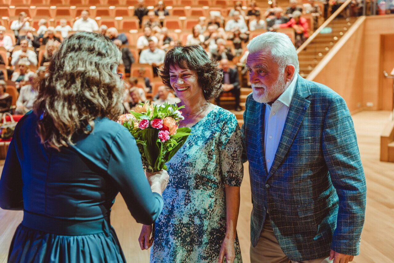 Gdańsk. W sali koncertowej Polskiej Filharmonii Bałtyckiej niemal 100 par odebrało z rąk prezydent Aleksandry Dulkiewicz gratulacje oraz wyjątkowe statuetki z bursztynem bałtyckim