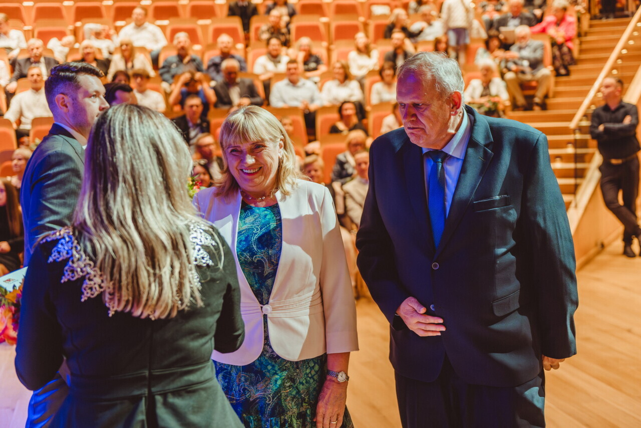 Gdańsk. W sali koncertowej Polskiej Filharmonii Bałtyckiej niemal 100 par odebrało z rąk prezydent Aleksandry Dulkiewicz gratulacje oraz wyjątkowe statuetki z bursztynem bałtyckim