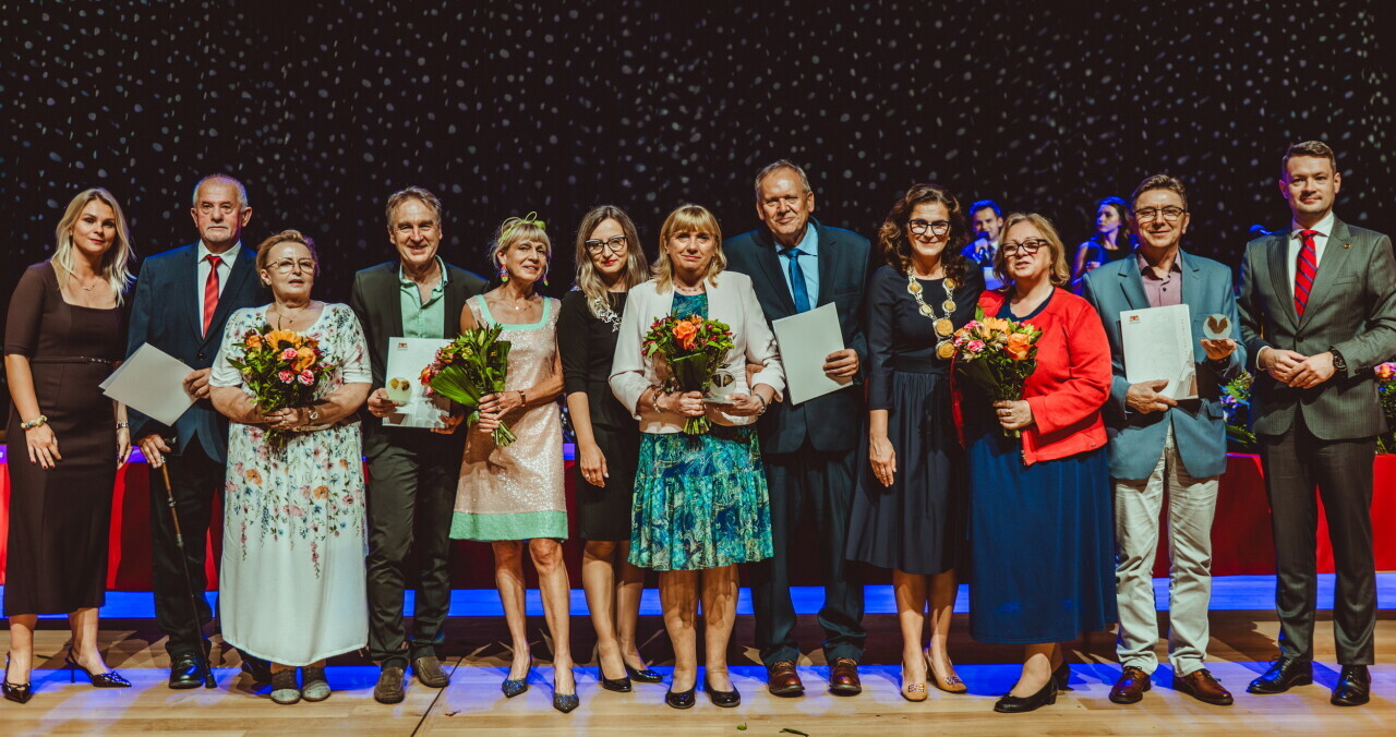 Gdańsk. W sali koncertowej Polskiej Filharmonii Bałtyckiej niemal 100 par odebrało z rąk prezydent Aleksandry Dulkiewicz gratulacje oraz wyjątkowe statuetki z bursztynem bałtyckim