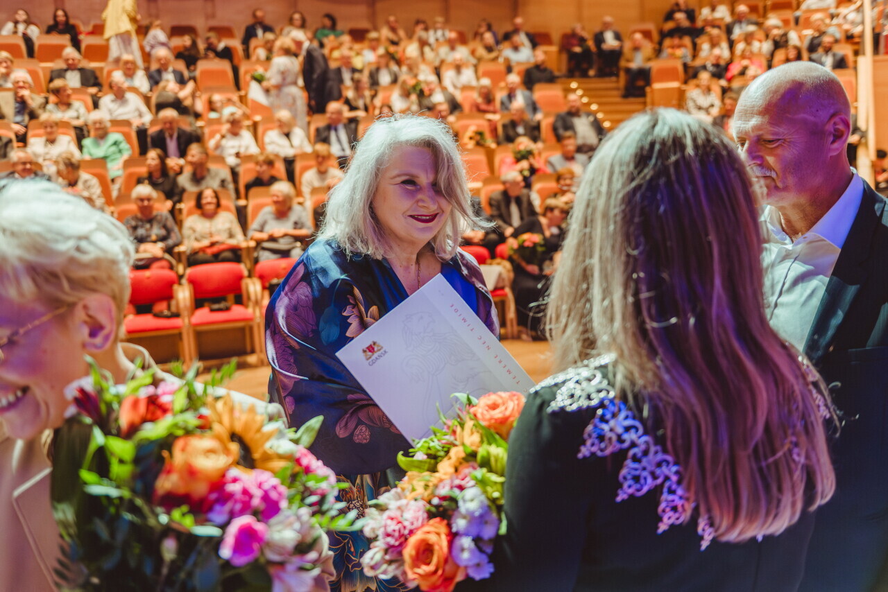 Gdańsk. W sali koncertowej Polskiej Filharmonii Bałtyckiej niemal 100 par odebrało z rąk prezydent Aleksandry Dulkiewicz gratulacje oraz wyjątkowe statuetki z bursztynem bałtyckim