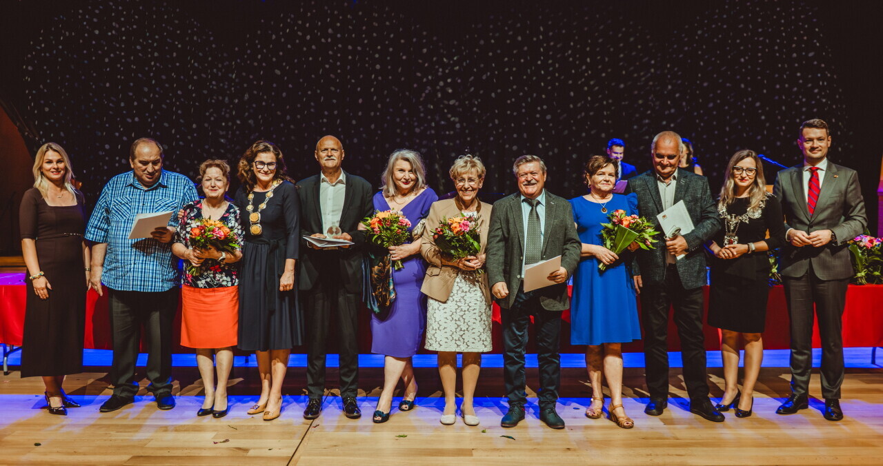 Gdańsk. W sali koncertowej Polskiej Filharmonii Bałtyckiej niemal 100 par odebrało z rąk prezydent Aleksandry Dulkiewicz gratulacje oraz wyjątkowe statuetki z bursztynem bałtyckim