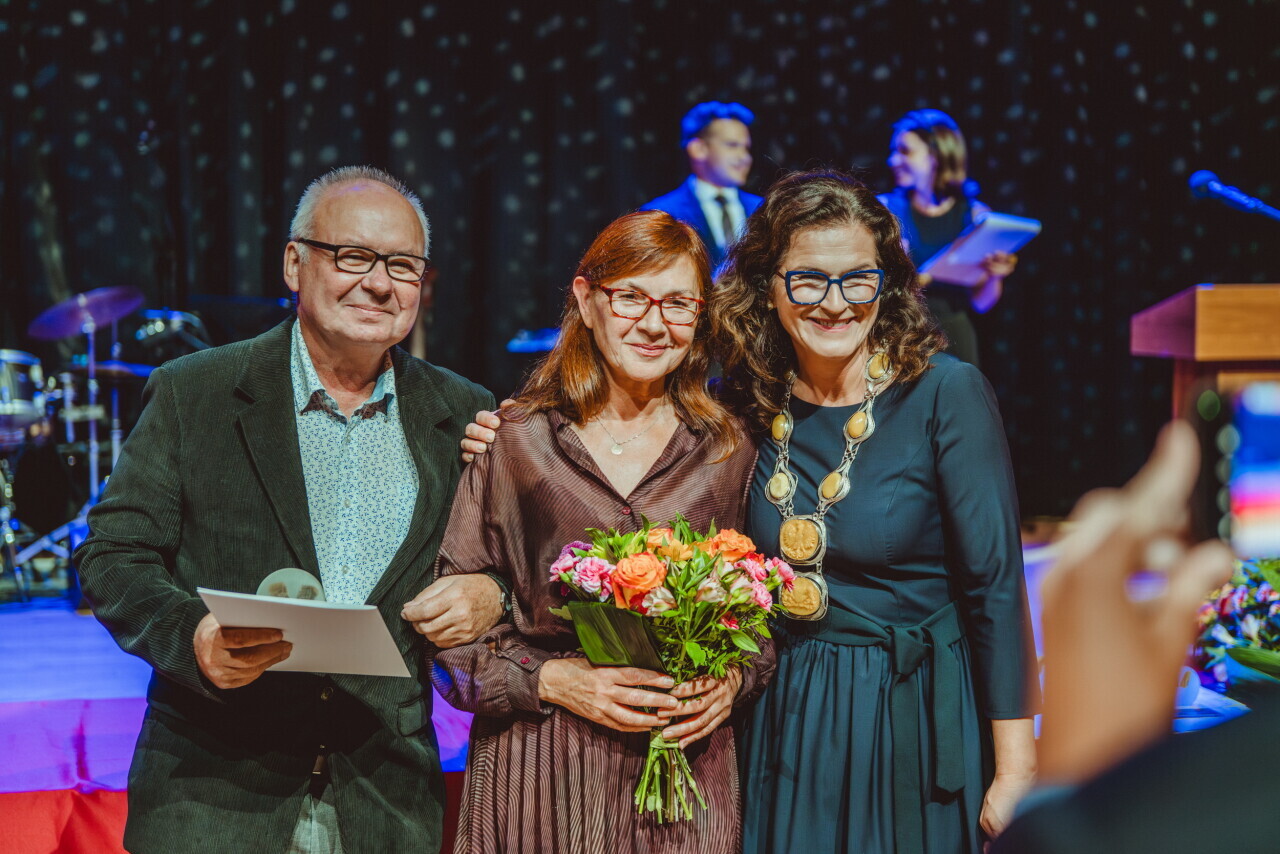 Gdańsk. W sali koncertowej Polskiej Filharmonii Bałtyckiej niemal 100 par odebrało z rąk prezydent Aleksandry Dulkiewicz gratulacje oraz wyjątkowe statuetki z bursztynem bałtyckim