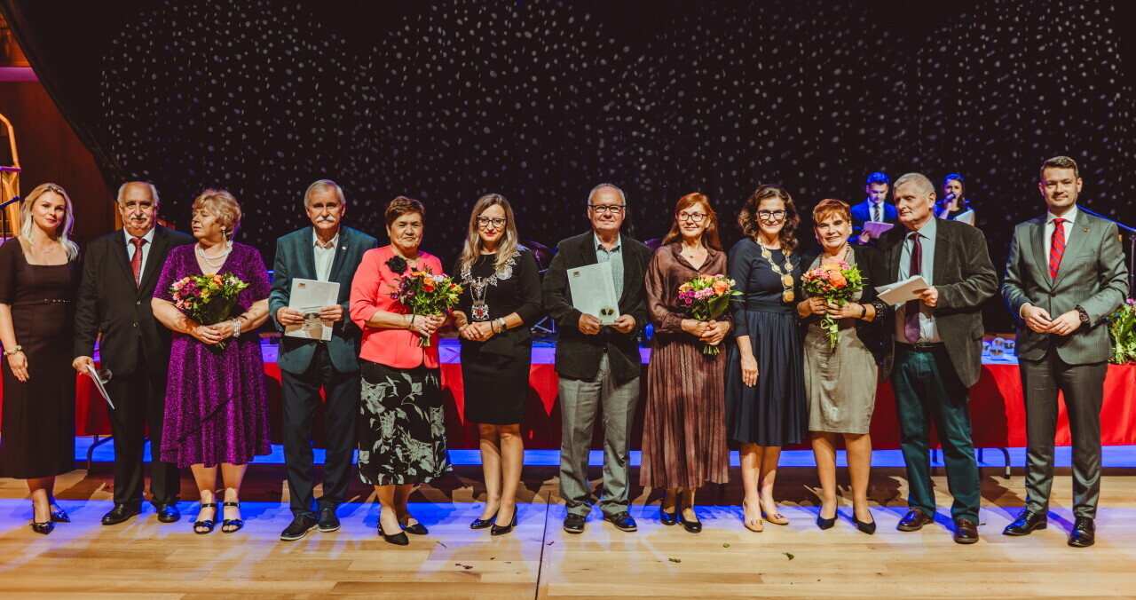 Gdańsk. W sali koncertowej Polskiej Filharmonii Bałtyckiej niemal 100 par odebrało z rąk prezydent Aleksandry Dulkiewicz gratulacje oraz wyjątkowe statuetki z bursztynem bałtyckim