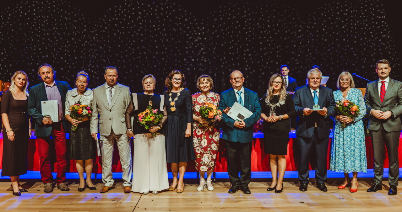 Gdańsk. W sali koncertowej Polskiej Filharmonii Bałtyckiej niemal 100 par odebrało z rąk prezydent Aleksandry Dulkiewicz gratulacje oraz wyjątkowe statuetki z bursztynem bałtyckim