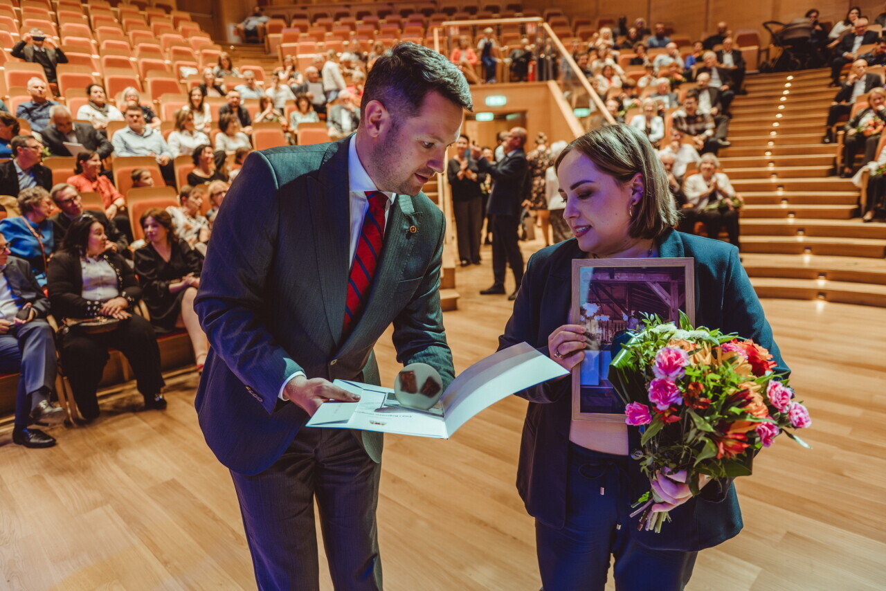 Gdańsk. W sali koncertowej Polskiej Filharmonii Bałtyckiej niemal 100 par odebrało z rąk prezydent Aleksandry Dulkiewicz gratulacje oraz wyjątkowe statuetki z bursztynem bałtyckim