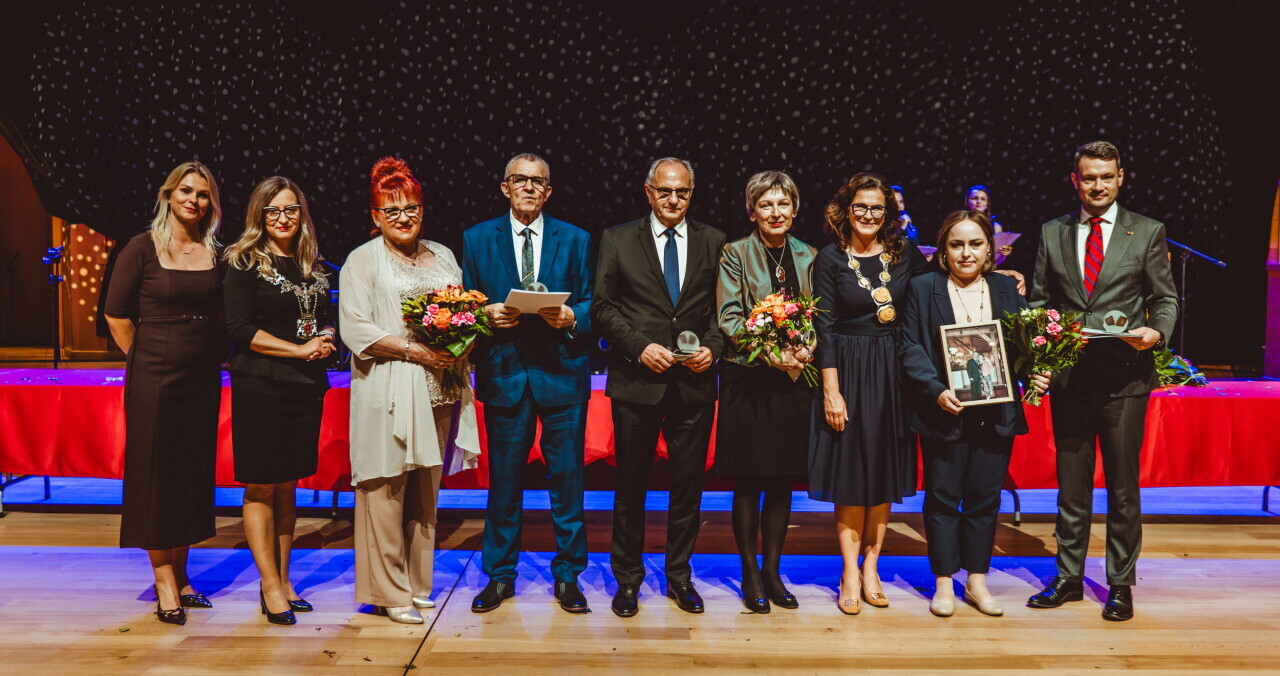 Gdańsk. W sali koncertowej Polskiej Filharmonii Bałtyckiej niemal 100 par odebrało z rąk prezydent Aleksandry Dulkiewicz gratulacje oraz wyjątkowe statuetki z bursztynem bałtyckim