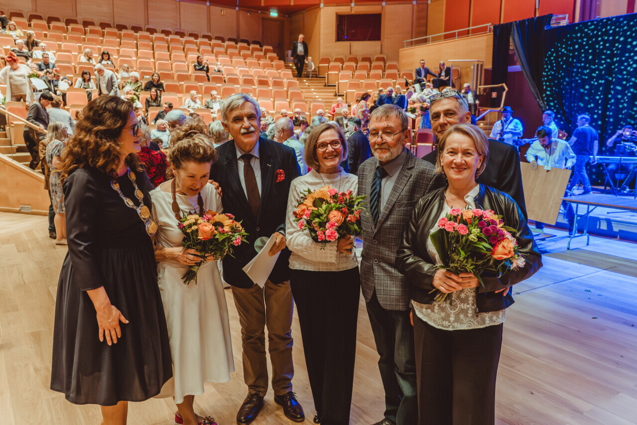 Gdańsk. W sali koncertowej Polskiej Filharmonii Bałtyckiej niemal 100 par odebrało z rąk prezydent Aleksandry Dulkiewicz gratulacje oraz wyjątkowe statuetki z bursztynem bałtyckim
