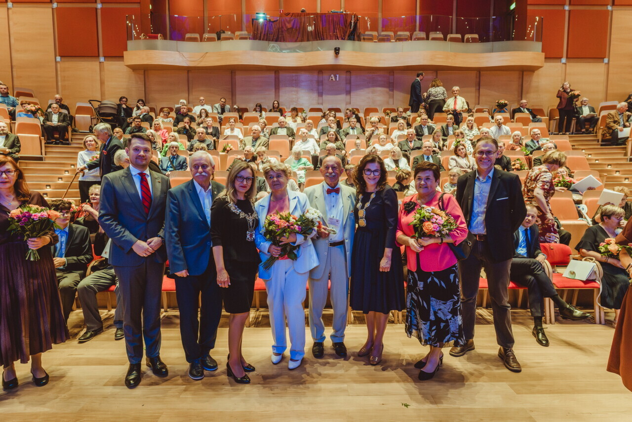 Gdańsk. W sali koncertowej Polskiej Filharmonii Bałtyckiej niemal 100 par odebrało z rąk prezydent Aleksandry Dulkiewicz gratulacje oraz wyjątkowe statuetki z bursztynem bałtyckim