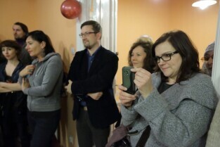 Otwarcie nowej siedziby Centrum Wsparcia Imigrantów. Nz Klaudia Iwicka-prowadzi biuro CWII i Martyna Tomczak, obie uczą Imigrantów języka polskiego.